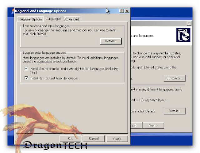 ننتقل الى شريط Language منها تضيف اللغات المرغوب فيها لمنطقة الشرق الاوسط ضع على المربعين التاليين ... والتي ستسمح بالكتابة من اليمين لليسار ... اعملها مثل الصورة التي في الاسفل